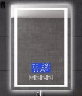 Дом / Продукт / Зеркало в ванной / Зеркало для ванной комнаты со светодиодной подсветкой и подсветкой Smart Bluetooth с цифровыми часами