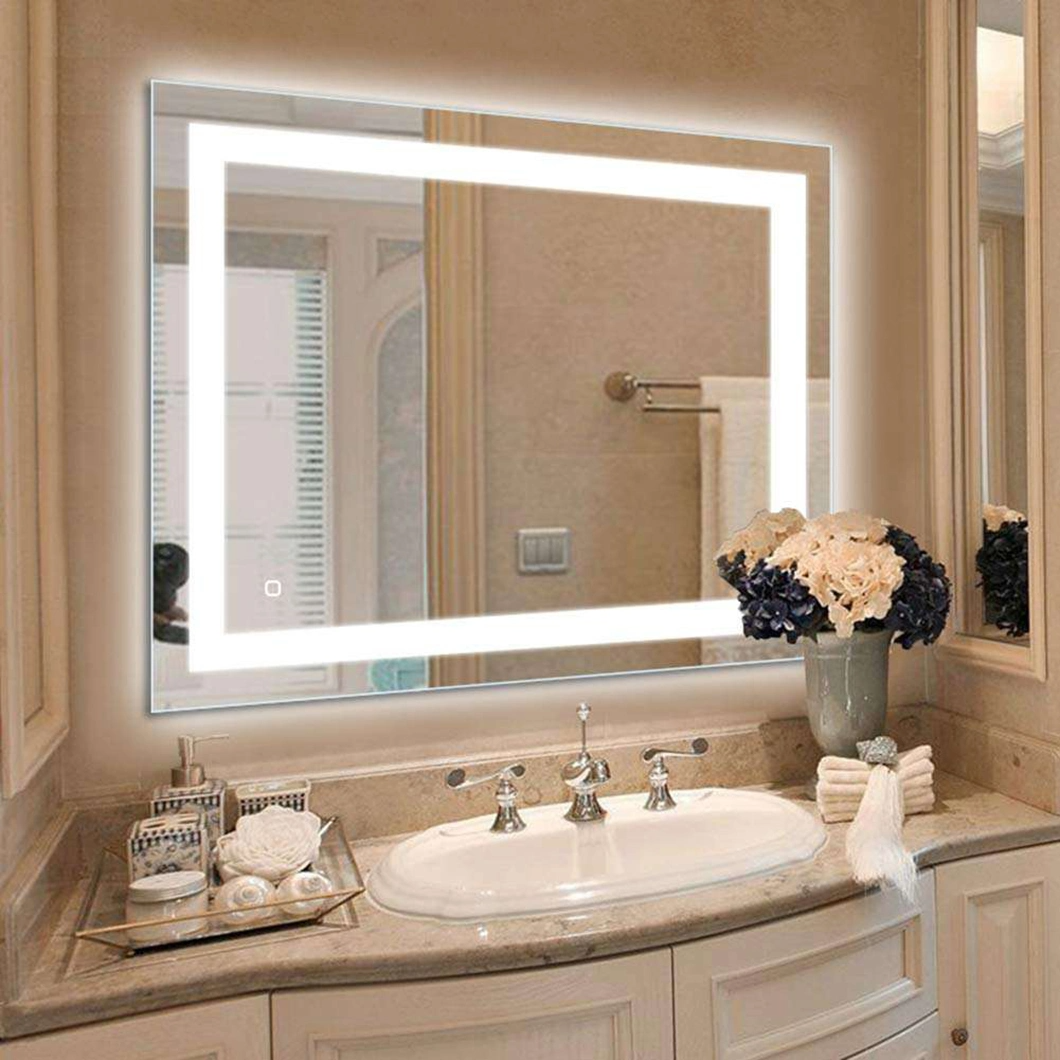 Дом / Продукт / Зеркало в ванной / Современное прямоугольное зеркало со светодиодной подсветкой в ​​стиле салона